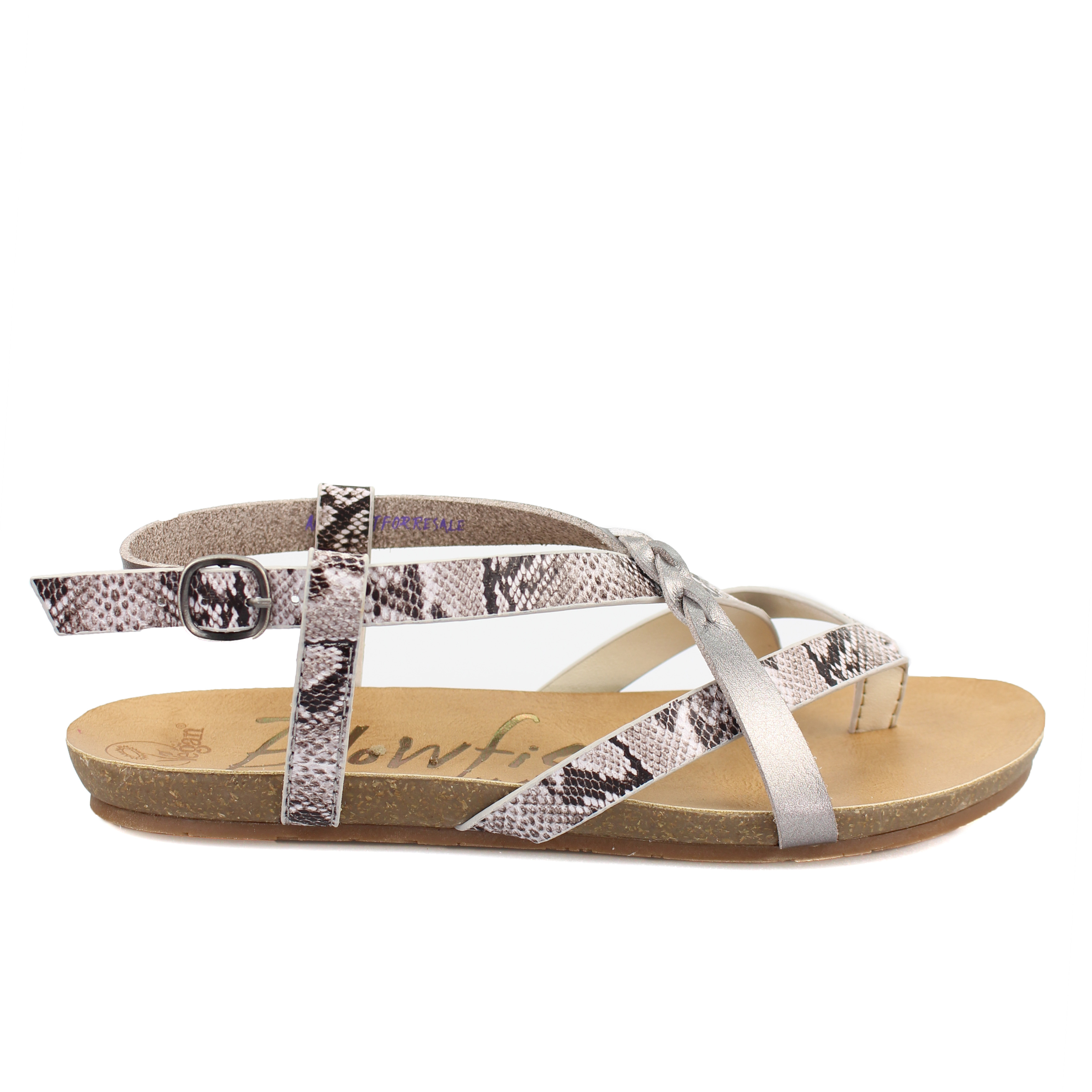 Granola-B is Blowfish Malibu's classic Granola sandal with a braided detail at the vamp. This style also features a faux-leather strappy buckle that is adjustable. Not to mention some added comfort with its faux-cork cushioned insole. Added bonus? This style is registered Vegan by the Vegan Society!