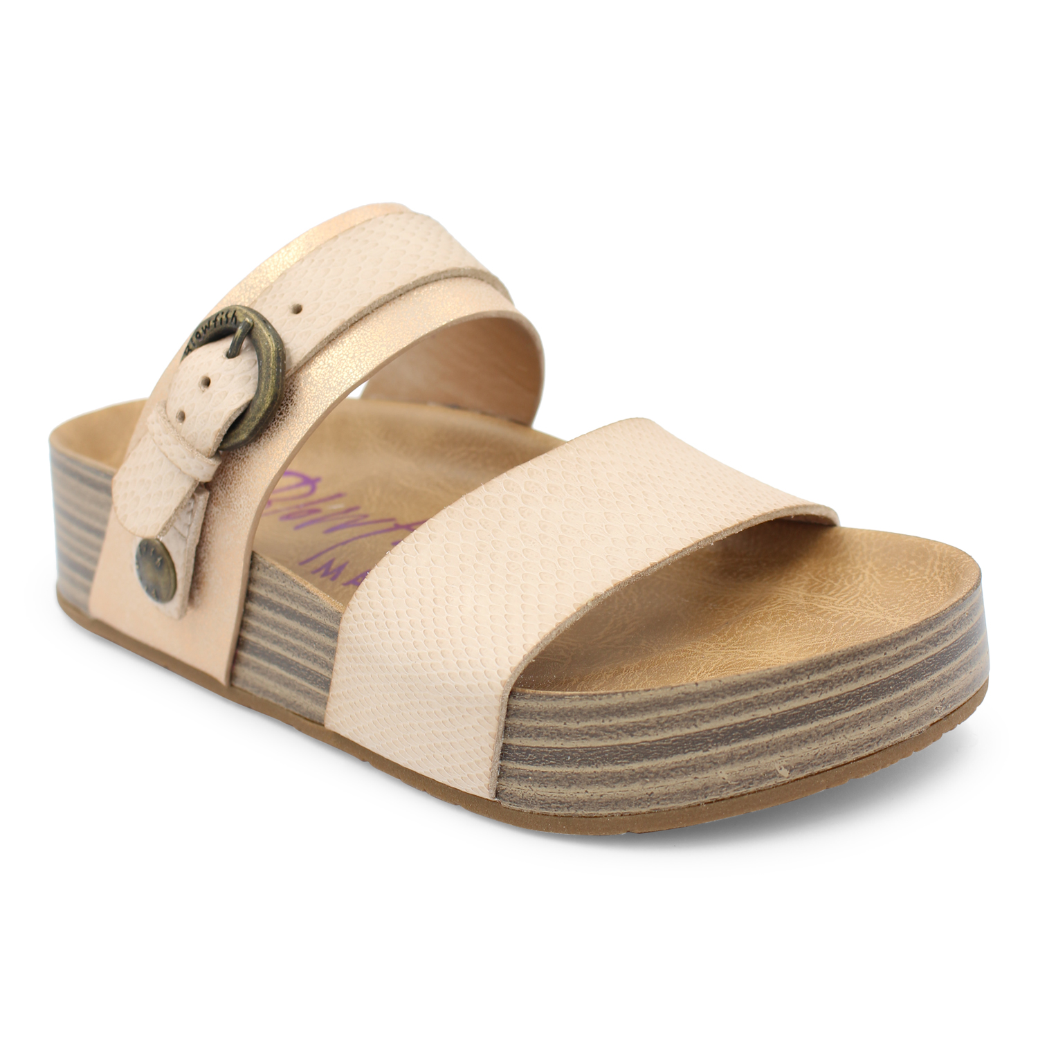 The Marge platform sandal features a lightweight stacked sole with a comfy molded footbed. Don't forget the details, like the branded button and metal buckle closure and the multi-wear strap.